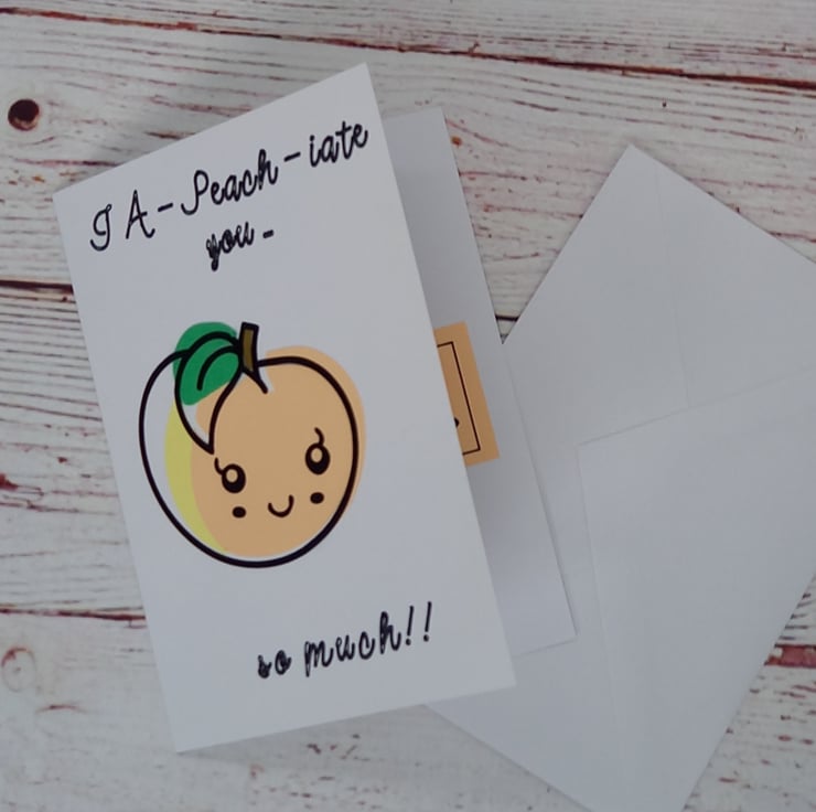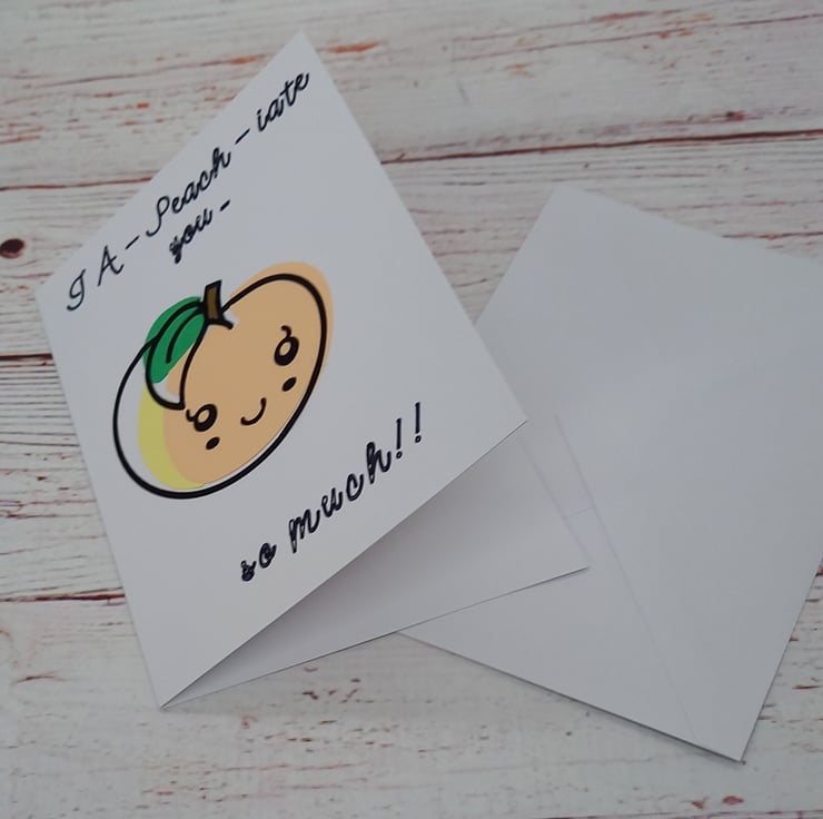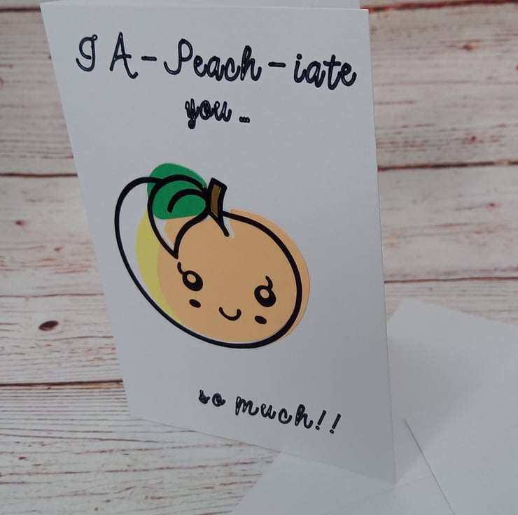 Featuring a cheerful little peach cut from card stock and the sentiment 'I a-peach-iate you so much' this card is certain to raise a smile.