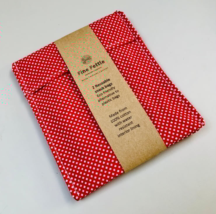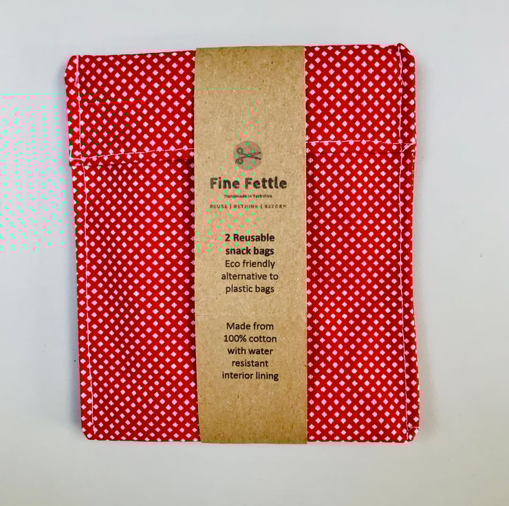 2 Reusable snack bags, fit in a lunch bag, handbag or pocket.