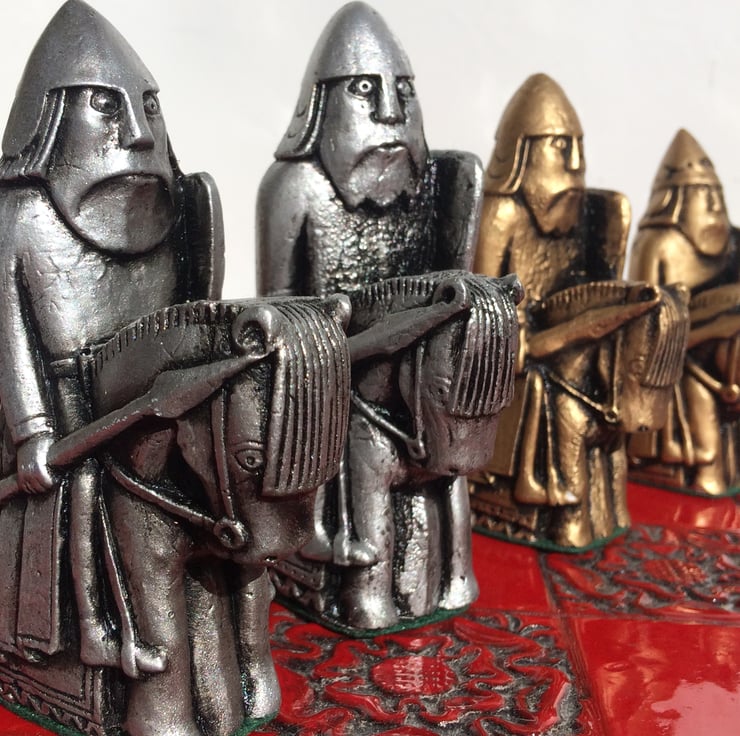 The original Lewis chessmen were made in the 12th century by Norwegian craftsmen and hidden by Nordic traders on the Isle of Lewis in the Outer Hebrides of Scotland where they lay undetected until 1831 when they were discovered by a local farmer.