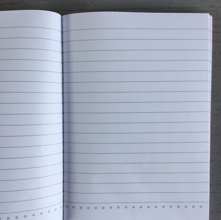 This notebook is A6 in size (4 by 6 inches) with 40 lined pages.....so plenty of space to write notes with the matching pen, that writes in black ink.