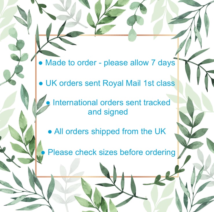 The photographs have been taken with a macro lens to show the detail close up. Please refer to the sizes above and drop me a message if you have any questions.