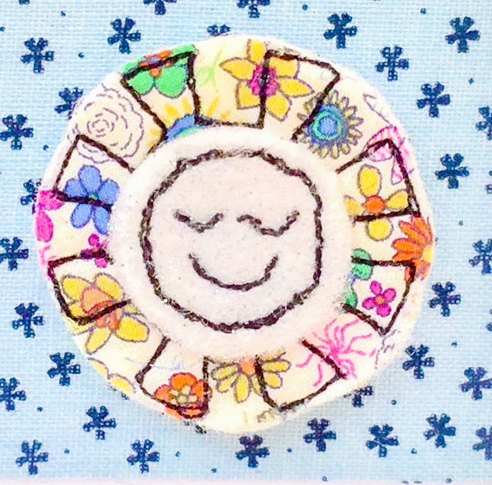 A little Liberty fabric flower with a felt face. This design has been made using freemotion embroidery. A lovely gift because the flower is also a magnet. A nice idea to cheer up your fridge.