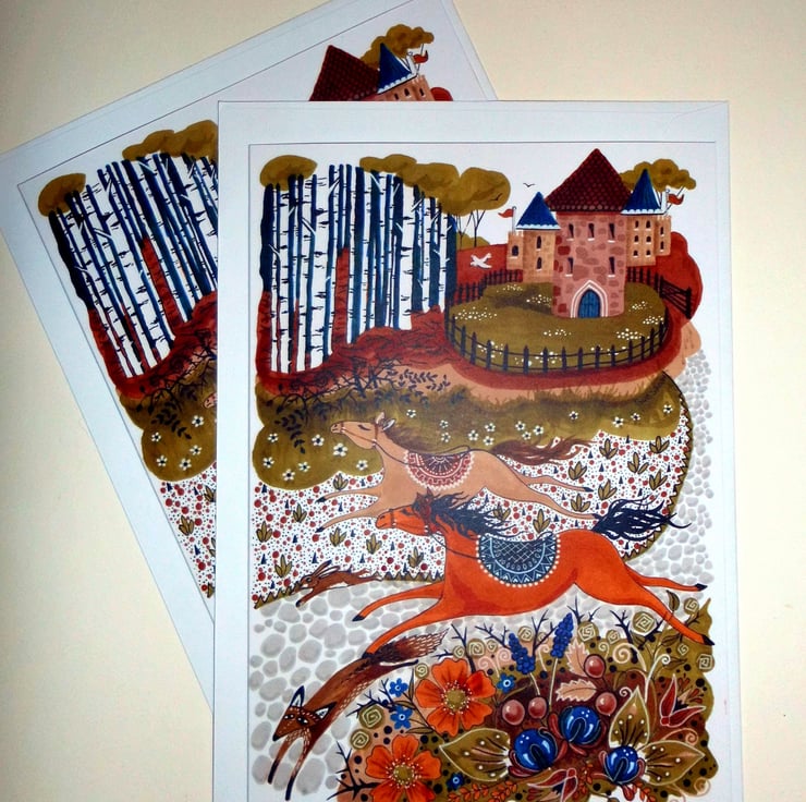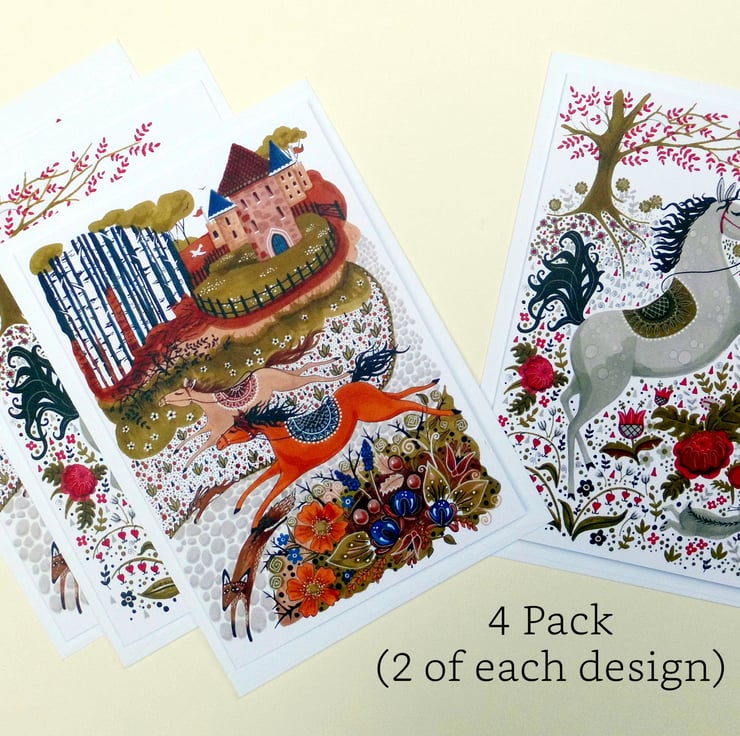 Printed on 350gsm card, supplied with envelopes and cello bags.