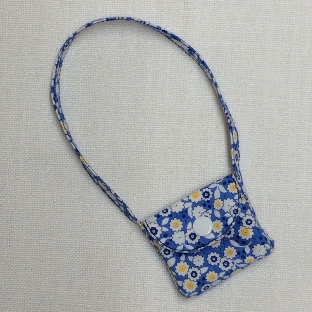 She has a matching bag that is fastened with a white stud so that treasures can be kept inside.