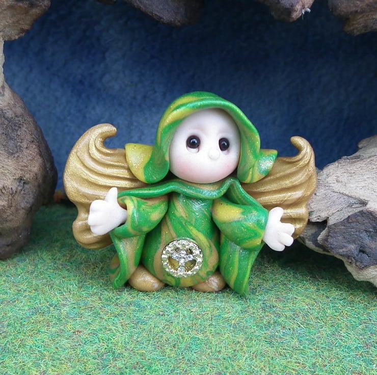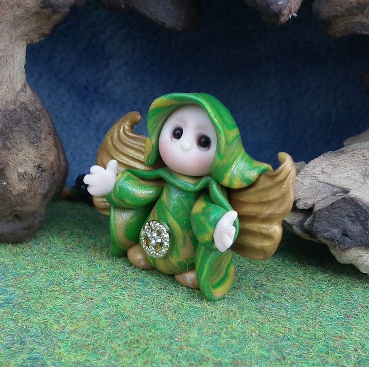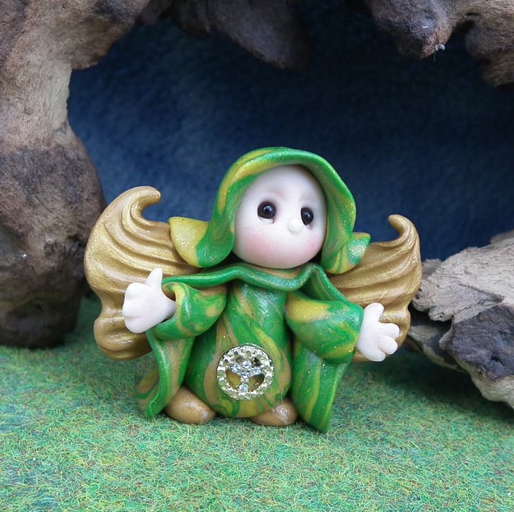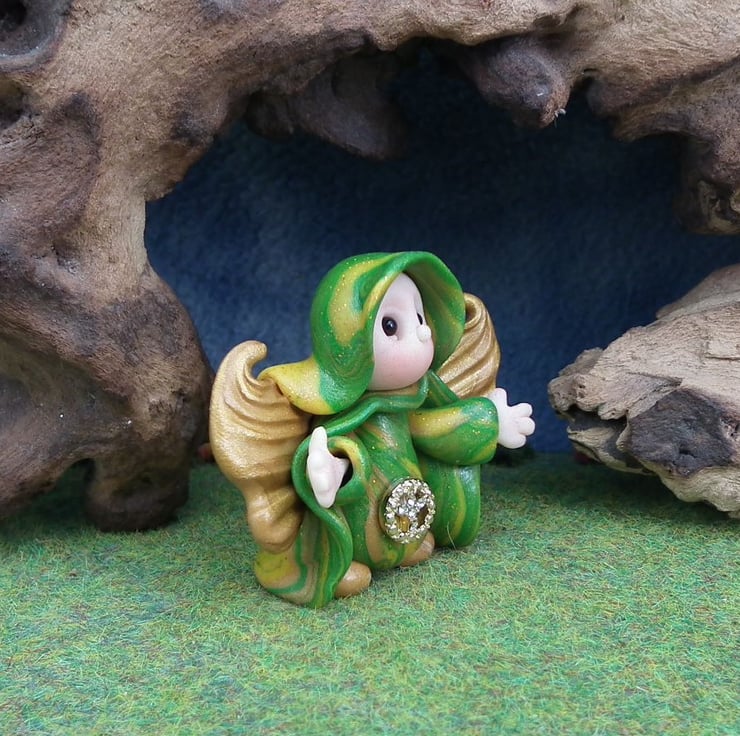 This is a 'one of a kind' creation having been entirely handmade without the use of moulds here at my studio on the Sussex Coast. Modelled with Prosculpt polymers, painted with heat set paints before sealing with lacquer, Meryl has sparkling black onyx eyes. Meryl the Celestial Gnome is just one and a half inches tall.