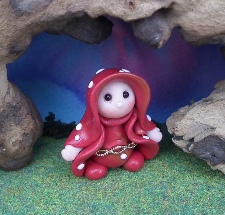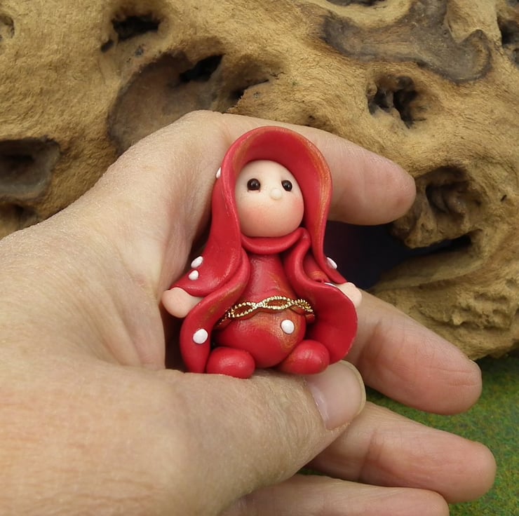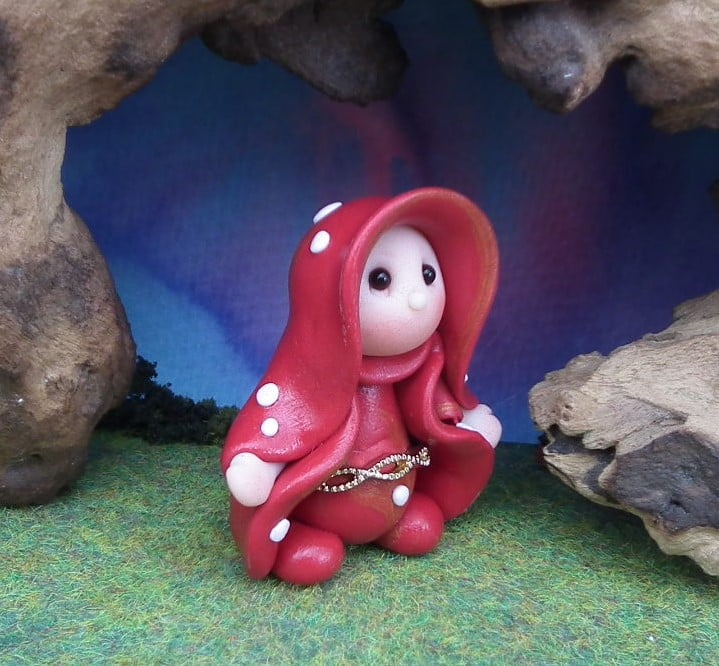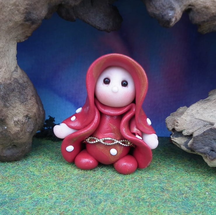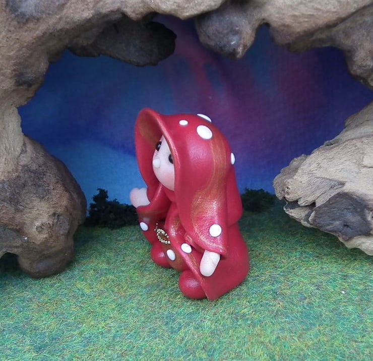 This is a 'one of a kind' creation having been entirely handmade without the use of moulds here at my studio on the Sussex Coast. Modelled with Prosculpt polymers, painted with heat set paints before sealing with lacquer, Furze has sparkling black onyx eyes. Furze the Toadstool Gnome is just one and a half inches tall. This listing is for one gnome, other gnomes and toadstools are available as separate listings.