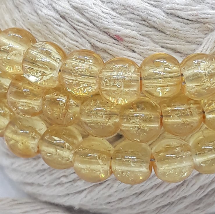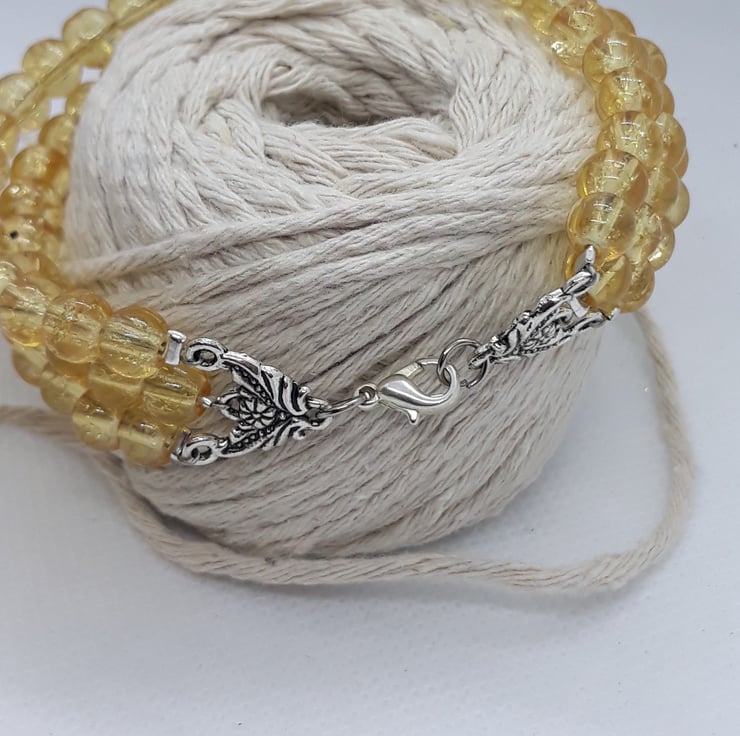 This pretty bracelet has a central bee picture set behind a glass cabochon with honey coloured crackle glass beads.