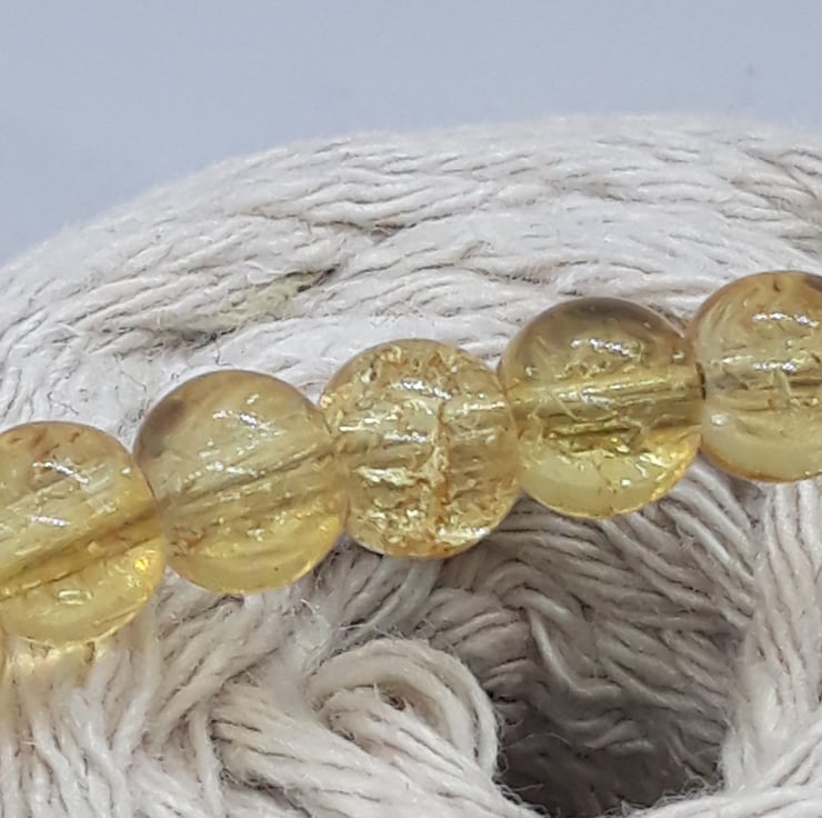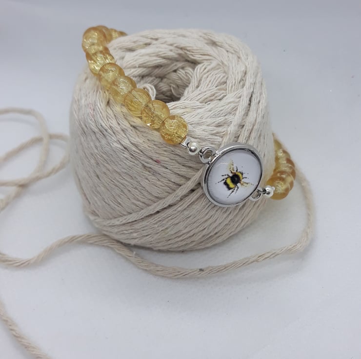 This pretty bracelet has a central bee picture set behind a glass cabochon with honey coloured 6mm crackle glass beads.