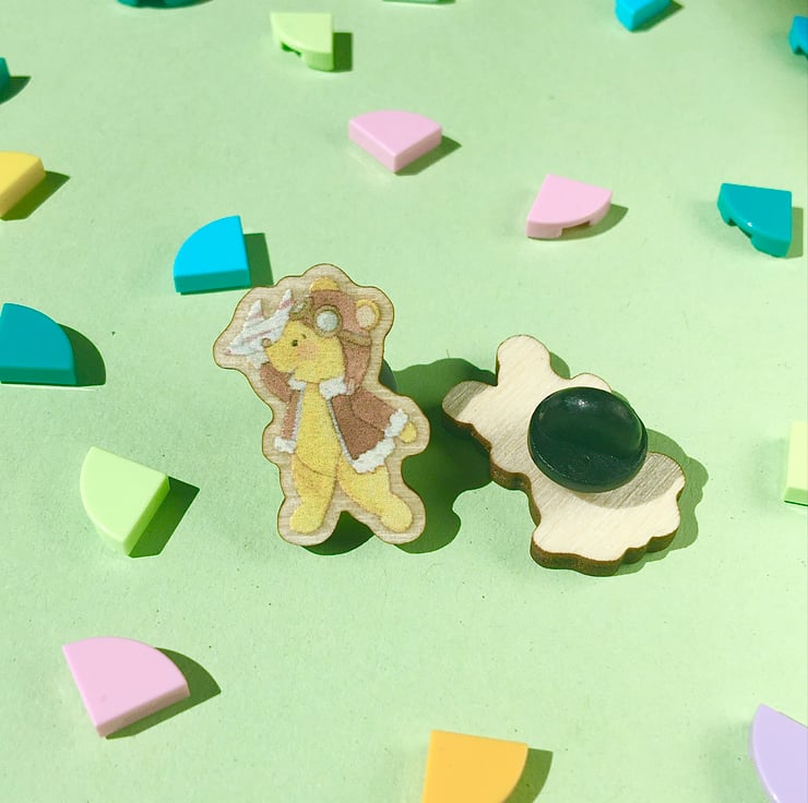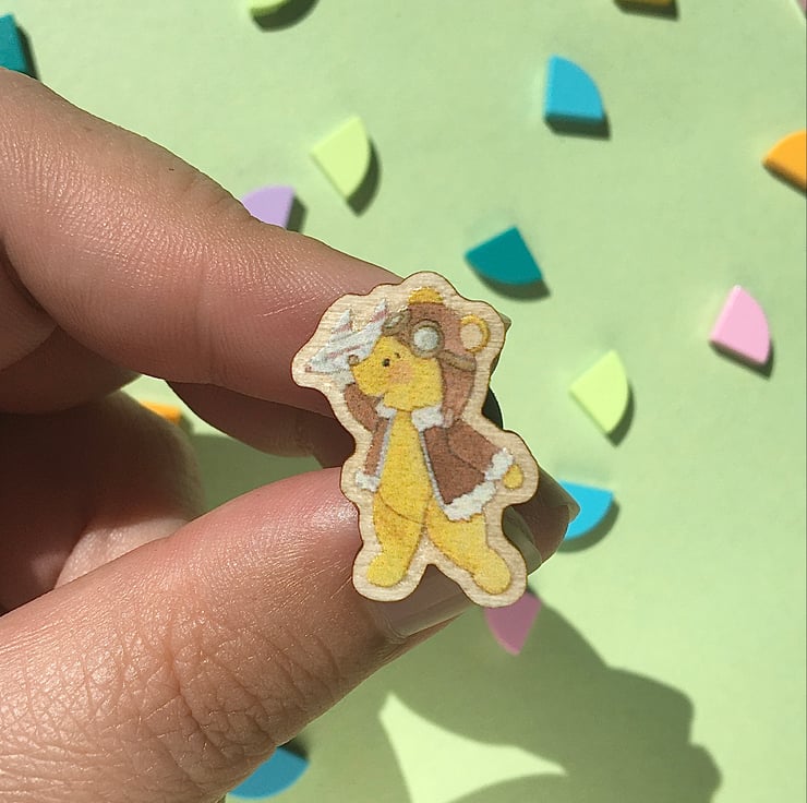 Printed onto responsibly sourced 3mm birch plywood and finished with a layer of gloss to keep them looking great. Complete with a rubber stopper on the back. Because of the wood grain every pin will be ever so slightly different.