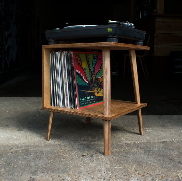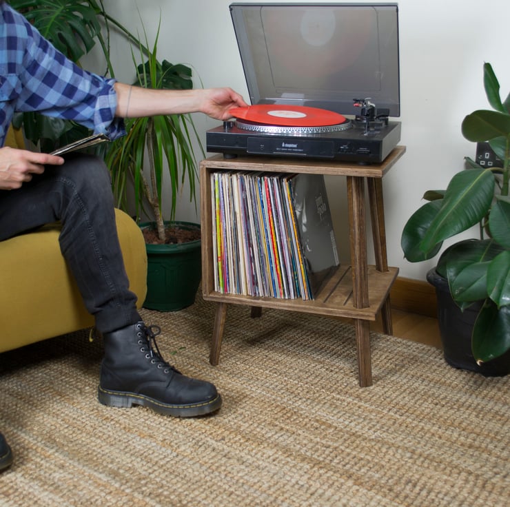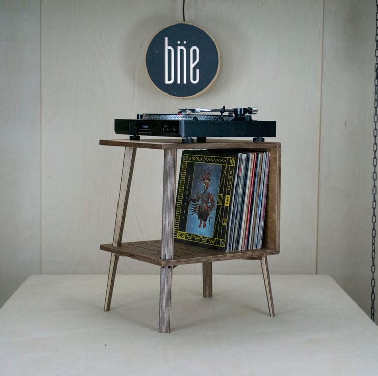 This is a perfect piece of furniture for records lovers who want to make the most of their smaller space without compromising on style. This unit blends retro, modern mid-century and Scandinavian inspirations making a strong design statement complementing various interiors. 60´s inspired angled flared legs intersect through tops creating an open and lightweight look without any visible screws. The simple, yet unique and functional design is ideal for keeping your records collection in style. The bottom shelf can hold around 70 vinyl records, while the smooth top provides a perfect surface for your player. This low profile player stand is an ideal choice for a beginner record collector who wants functionality and style in a small package.