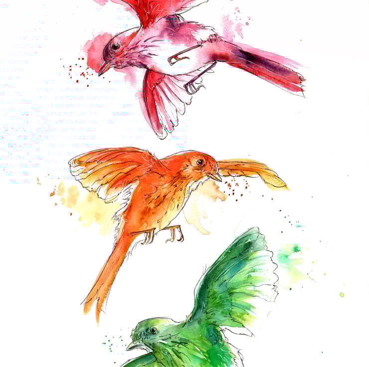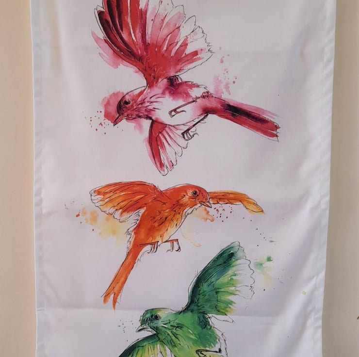 This tea towel features my 'Three Little Birds' design., taken from an original watercolour painting. It has been made in the UK using 100% organic cotton, and measures 44cm x 72cm. The tea towel is hemmed on all sides, is machine washable, and the colours are locked in to remain vibrant with minimal fade over time!