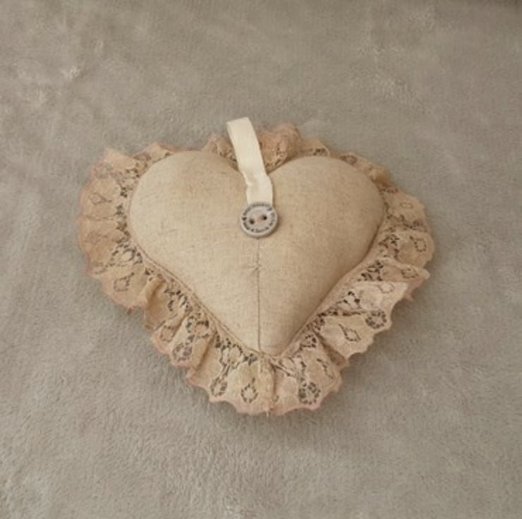 The heart can be hung, there is a loop to the back but can also be used as a decorative piece by leaving the loop out of site to the back of the cushion.