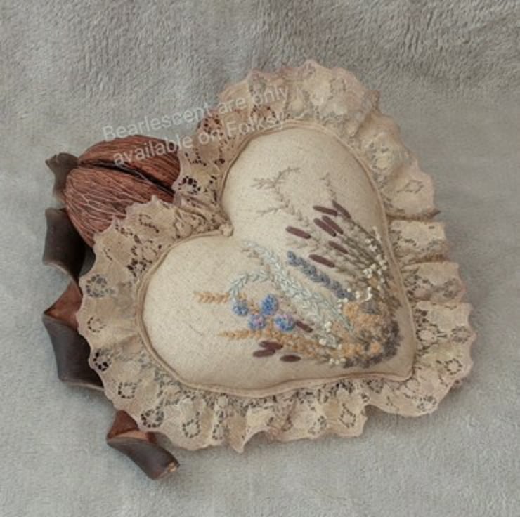 Beautiful hand embroidered lavender heart. A unique keepsake gift designed and created by Bearlescent