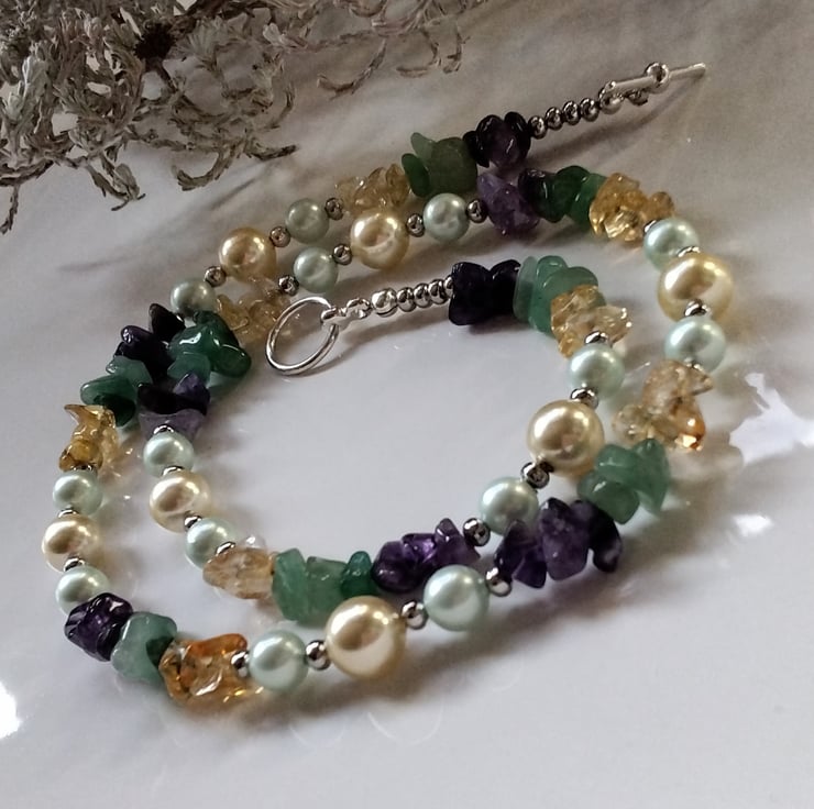 Amethyst, Citrine, Aventurine & Shell Pearl Necklace