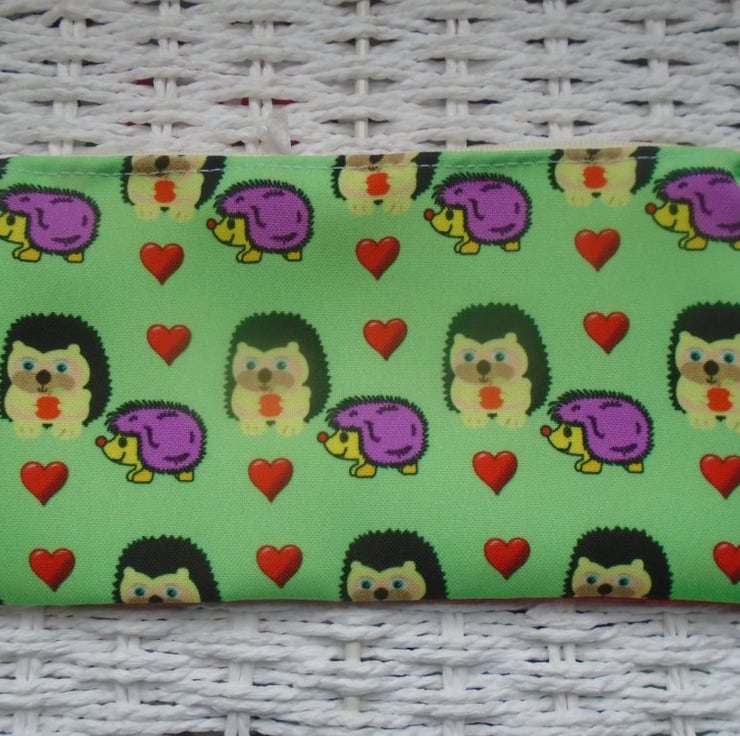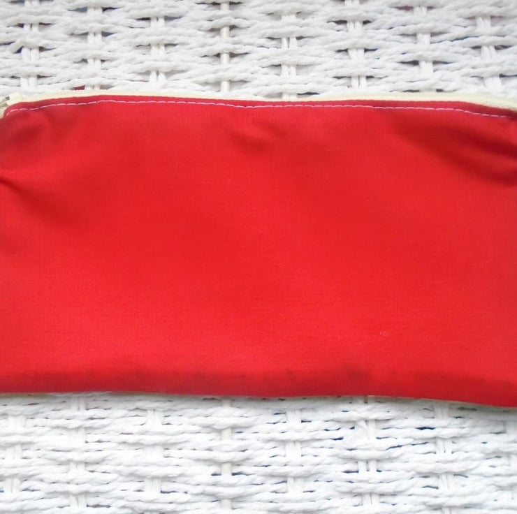 Small makeup bag or pencil case 20 cm x 10 cm lined with zip. Each one unique. Double sided Picture on front red back.