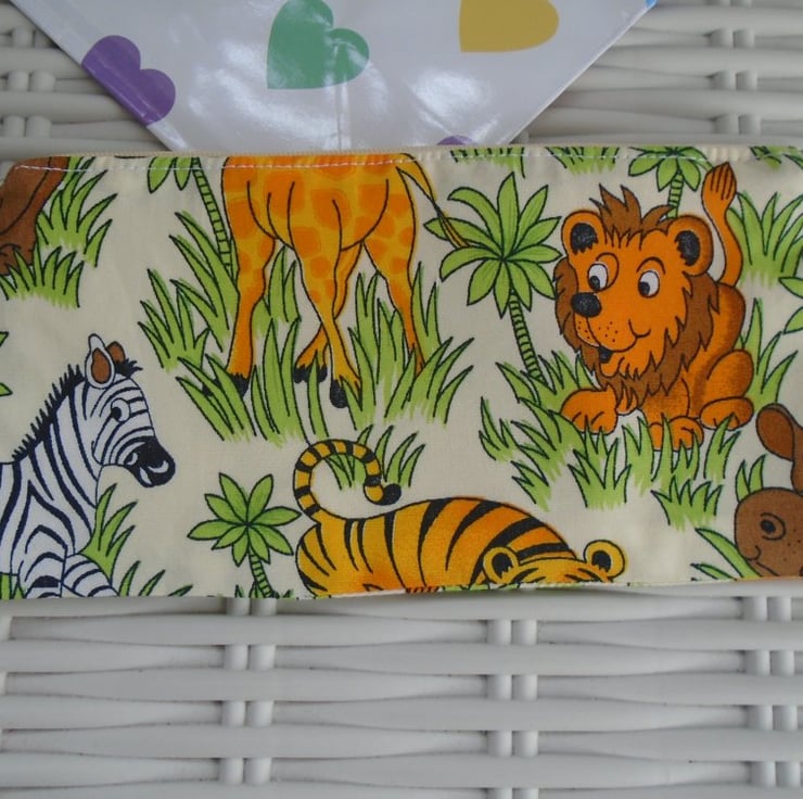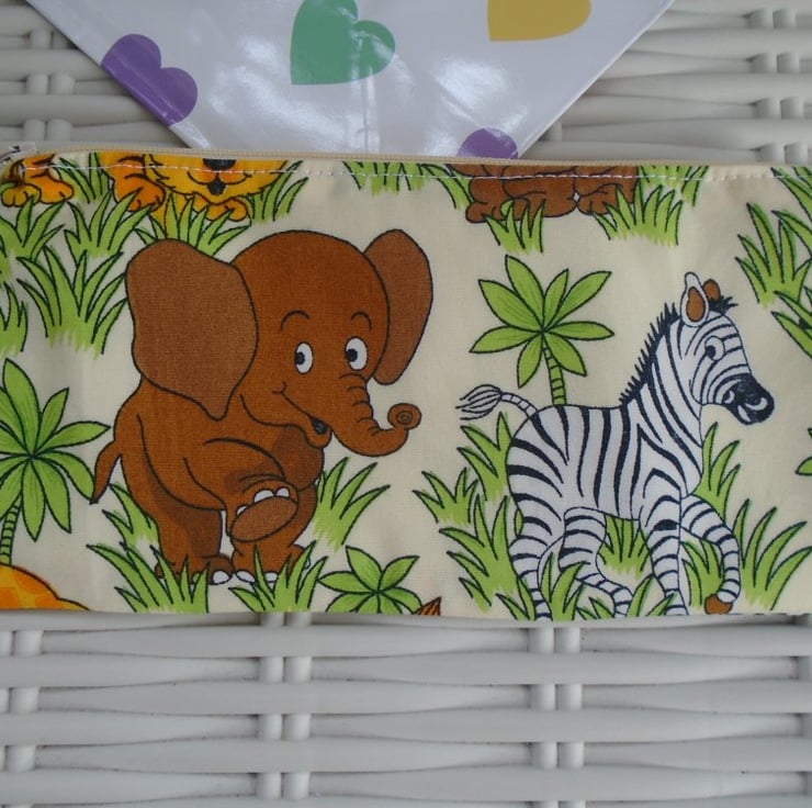 Small makeup bag or pencil case 20 cm x 10 cm lined with zip. Each one unique. Double sided picture shows typical example.