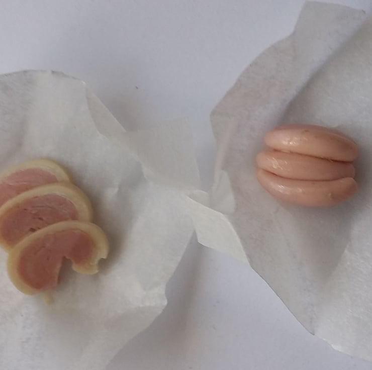 A 1.12TH scale wrap of bacon and sausages ideal for a kitchen or shop