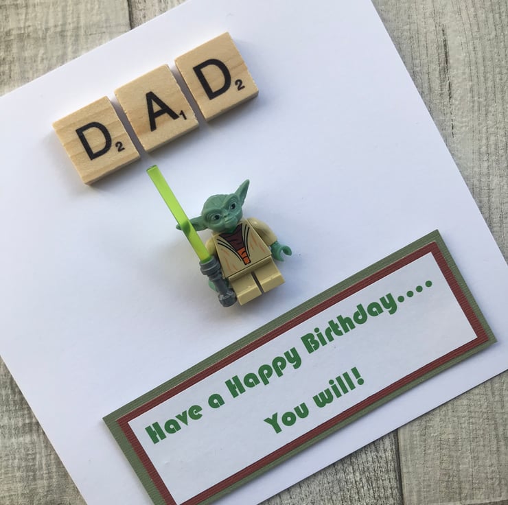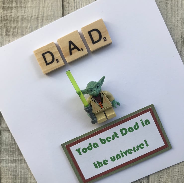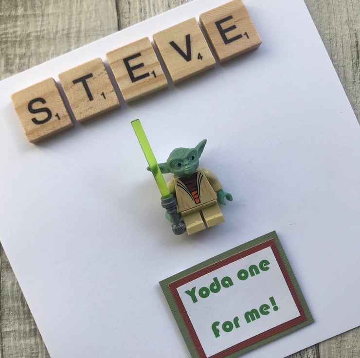 Send super hero wishes with this beautiful personalised handmade greetings card, featuring Yoda from Star Wars perfect for Father’s Day, Birthday or Anniversary