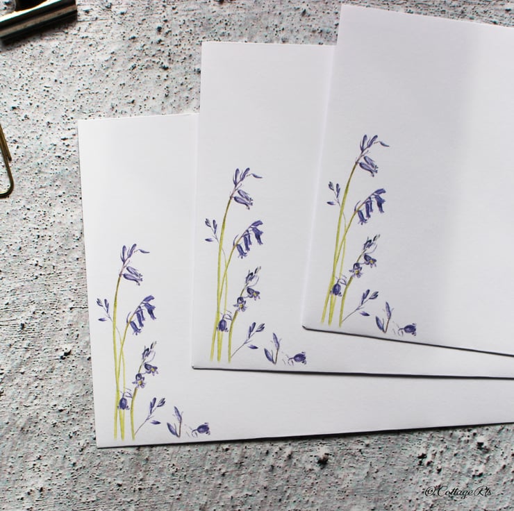 The artwork for this Bluebell design were originally created by us before being printed on to writing paper and envelopes.