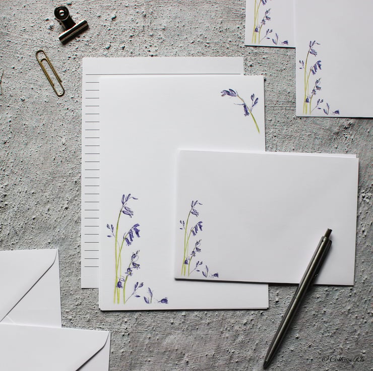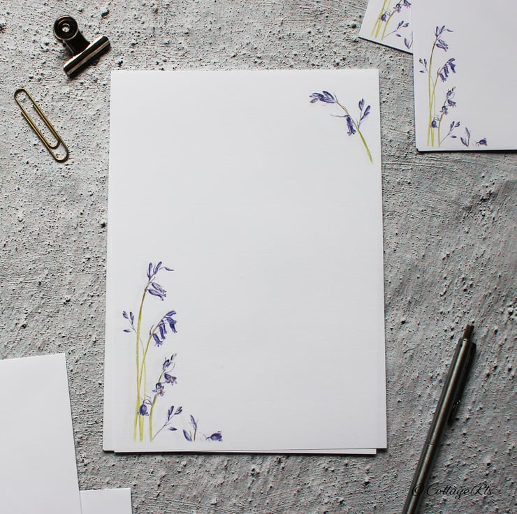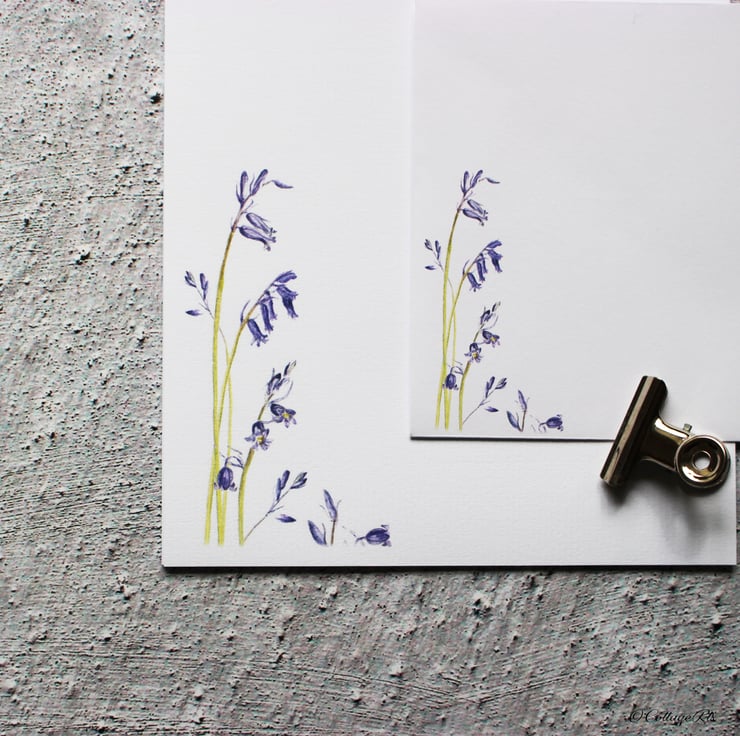 - 10 sheets of A5 100gsm laid letter writing paper printed with the Bluebell design in the bottom left hand corner of the page.