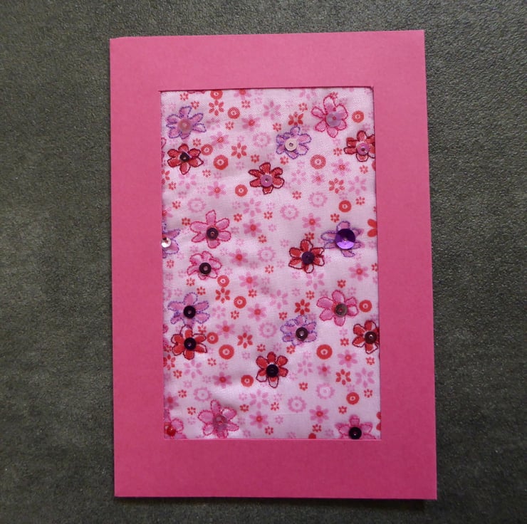 Machine embroidered multi-layered flower design in a deep pink quality aperture card, with envelope.
