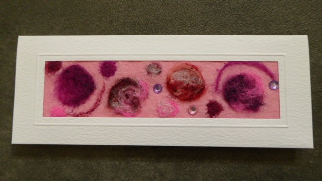 Hand needle felted fabric in a white embossed quality aperture card, with envelope.