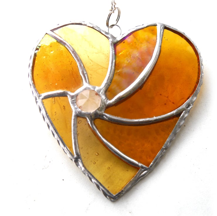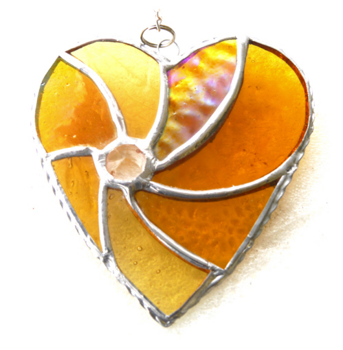 Gold Swirl Heart Stained Glass Suncatcher 093 Golden Wedding