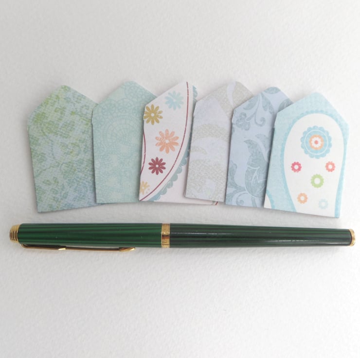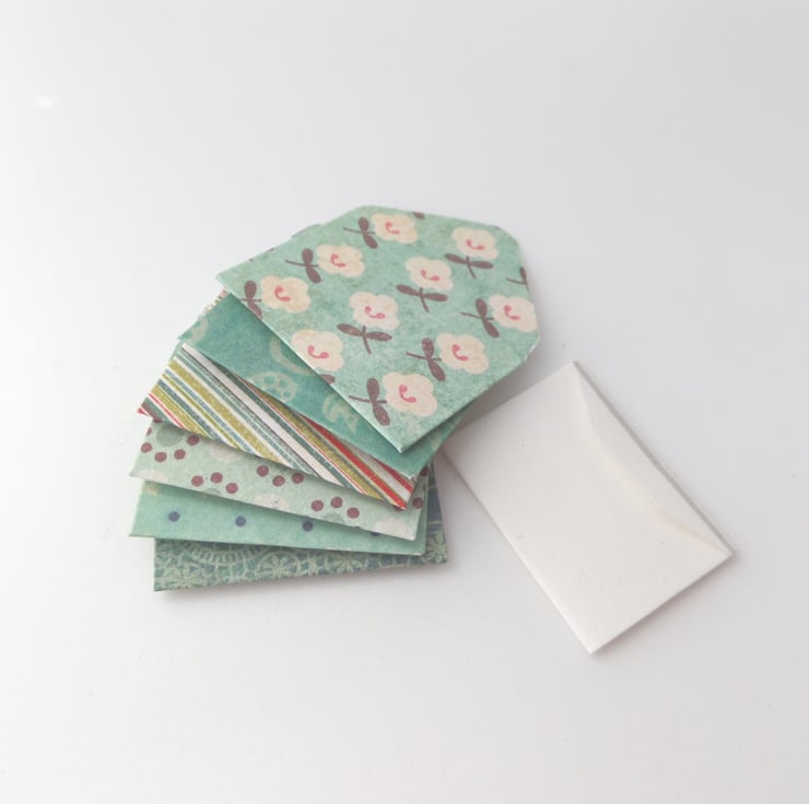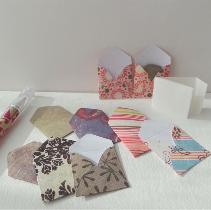 This is a set of 6 teeny weeny notelets in handmade envelopes.