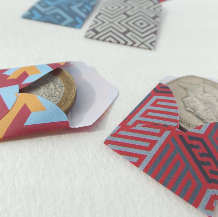 They can fit a £2 coin inside, but best for a £1 or less with the notelet too.