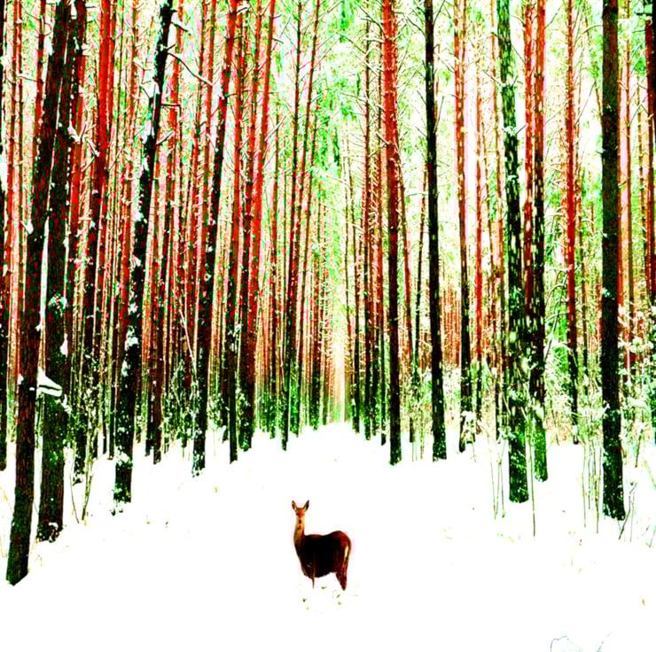 If you like simplicity, without the tinsel and glitter of Christmas, then this is for you; a deer in the woodland, with snow covered trees in the background.