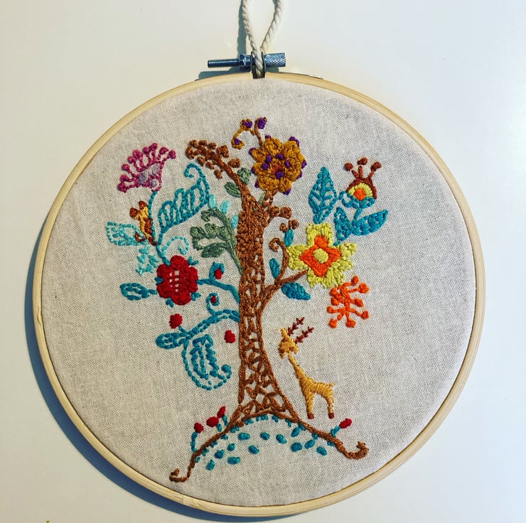 Handmade and hand embroidered this hoop art picture is sewn onto natural linen and backed with ivory felt fabric