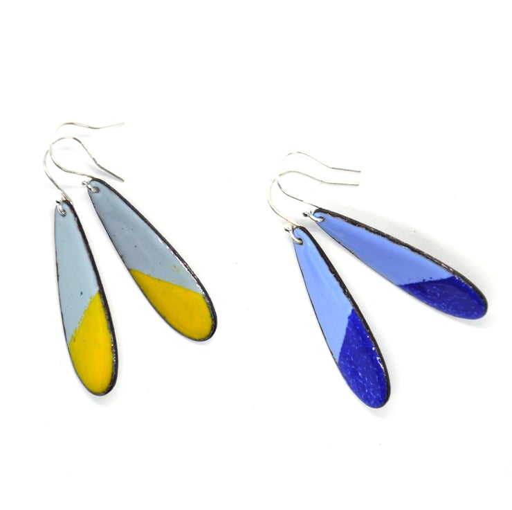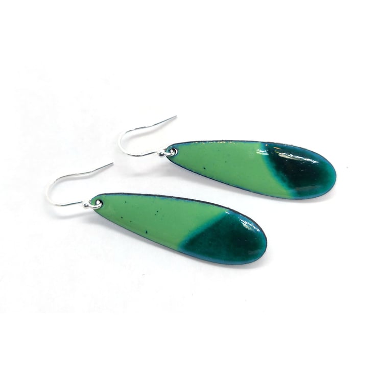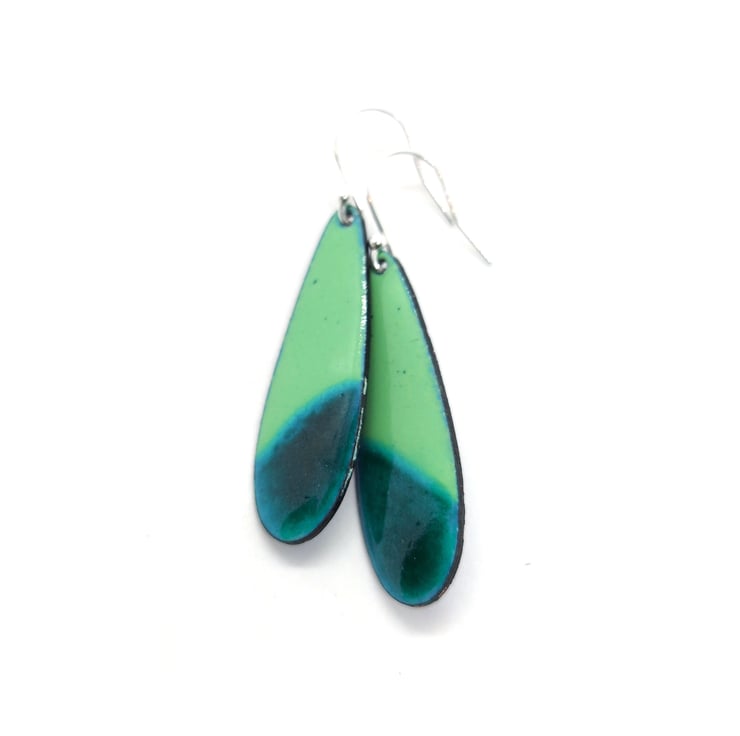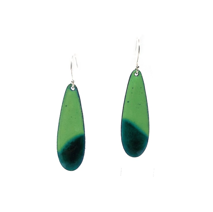These beautiful coloured drop earrings come in two shades of green enamel. They add a pop of colour to an outfit and make great statement jewellery.