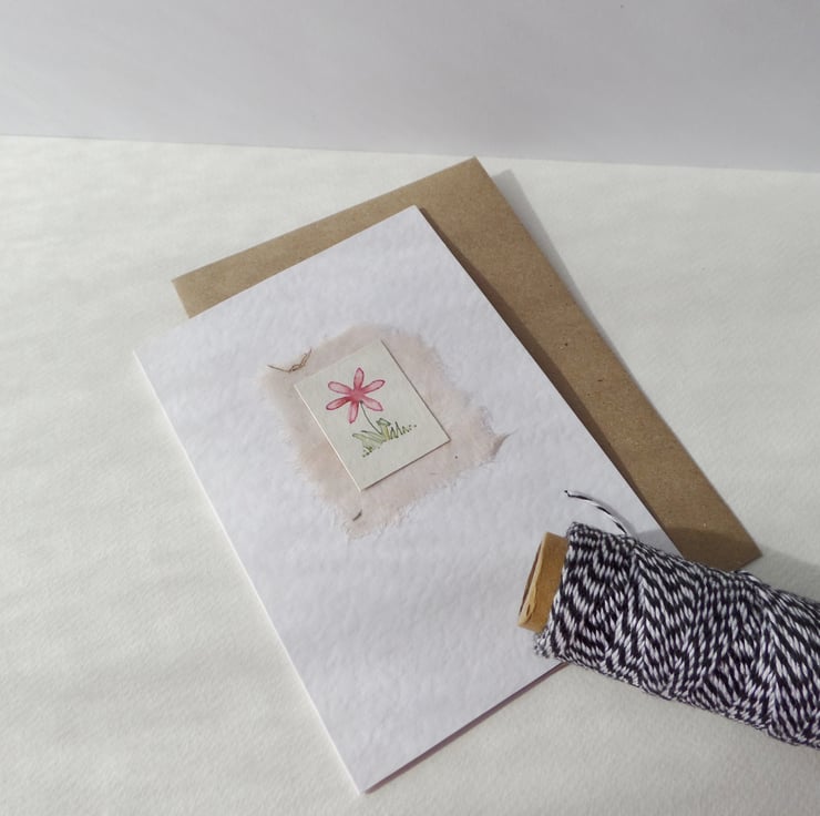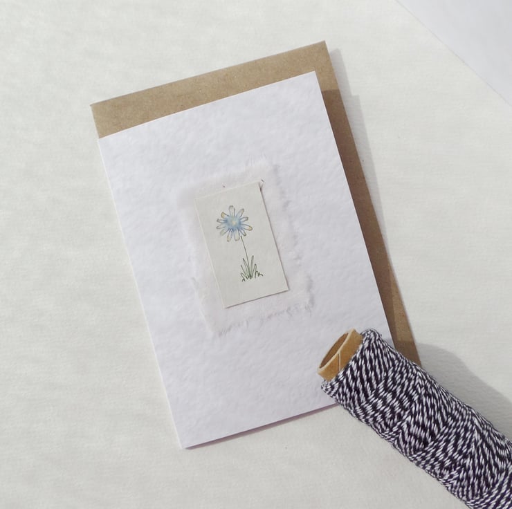 Sweet and unique, these little watercolour flowers are on a layer of handmade paper with feathered edges.