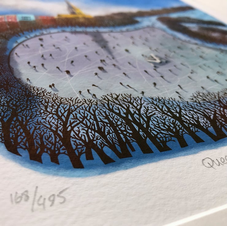 Signed, stamped, hand titled, limited edition and mounted Giclee print of original illustration by Mark McPhelim.