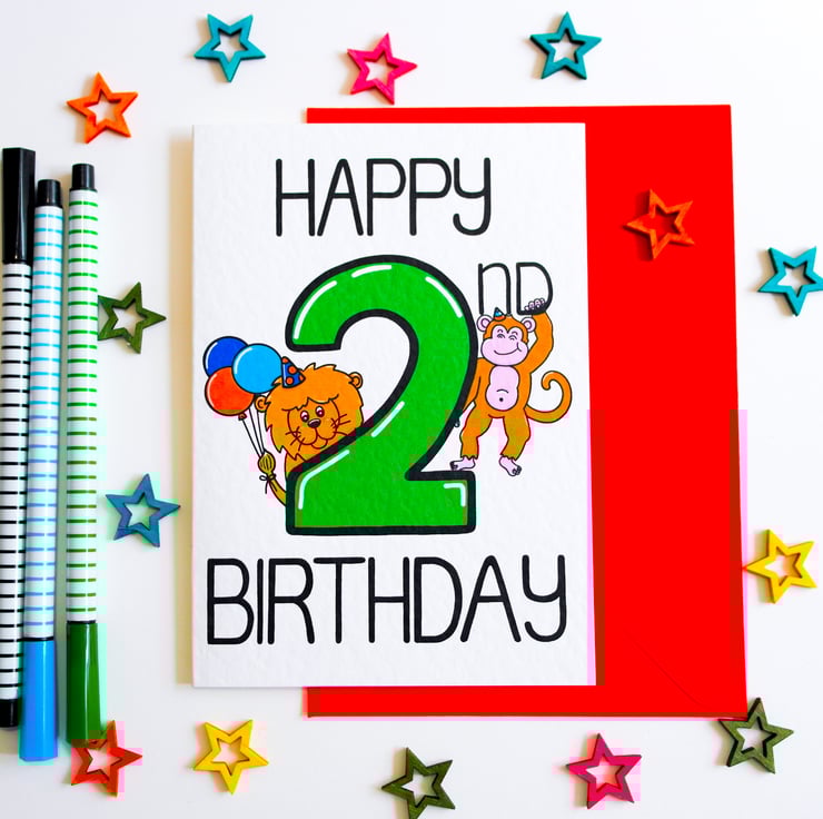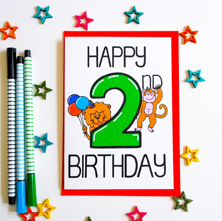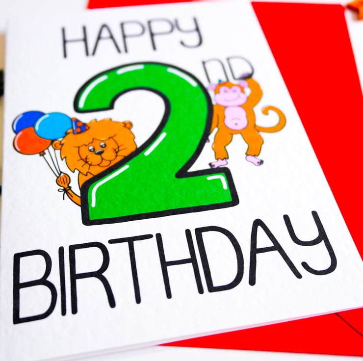 Greeting on front: HAPPY 2ND BIRTHDAY