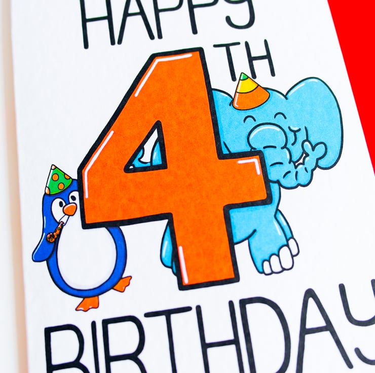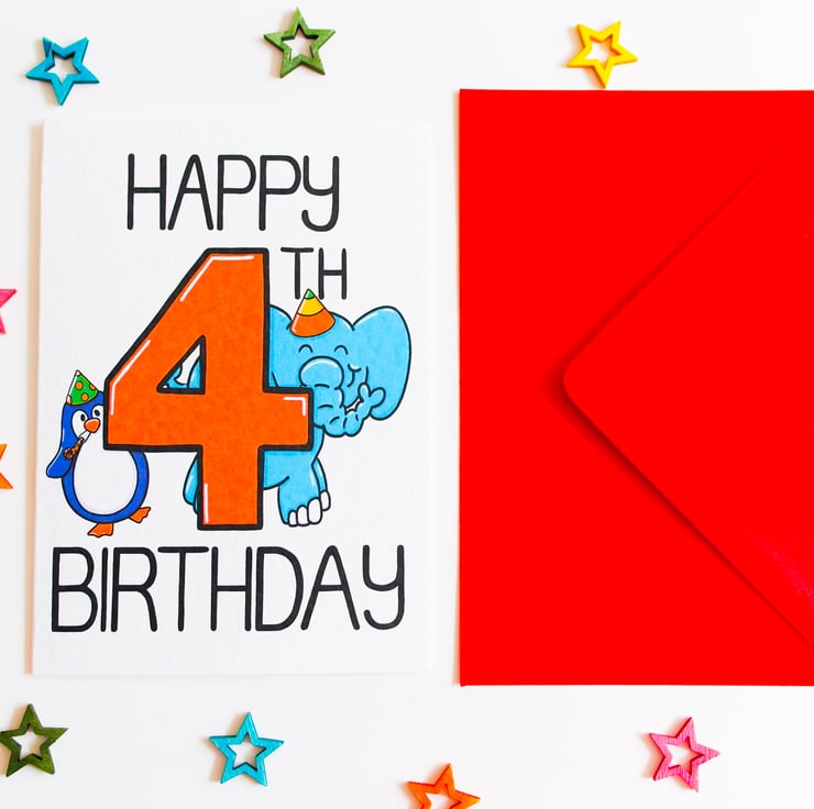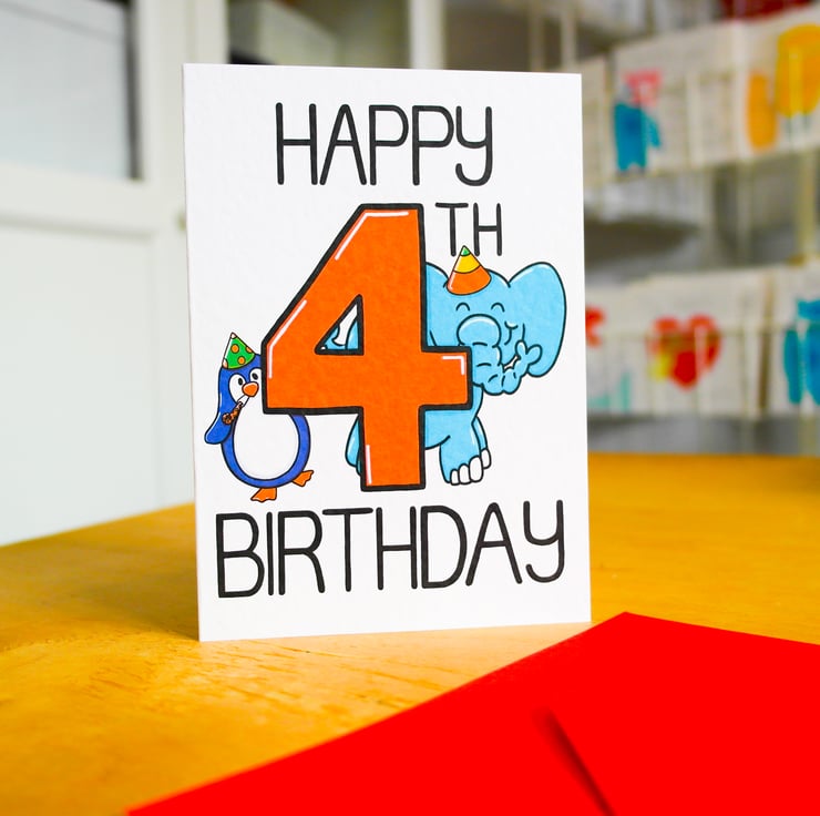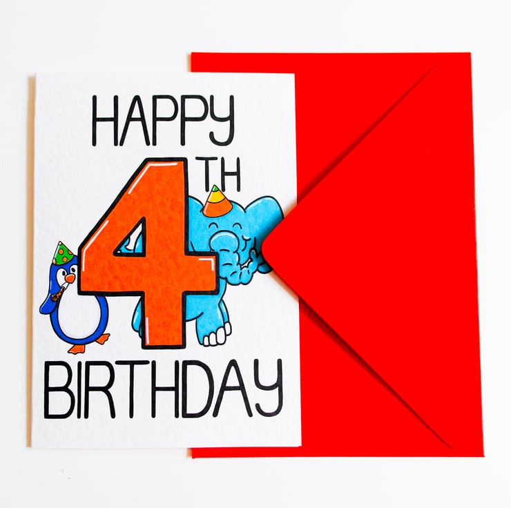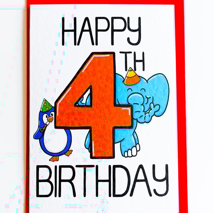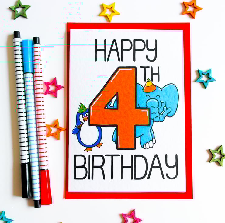 Greeting on front: HAPPY 4TH BIRTHDAY