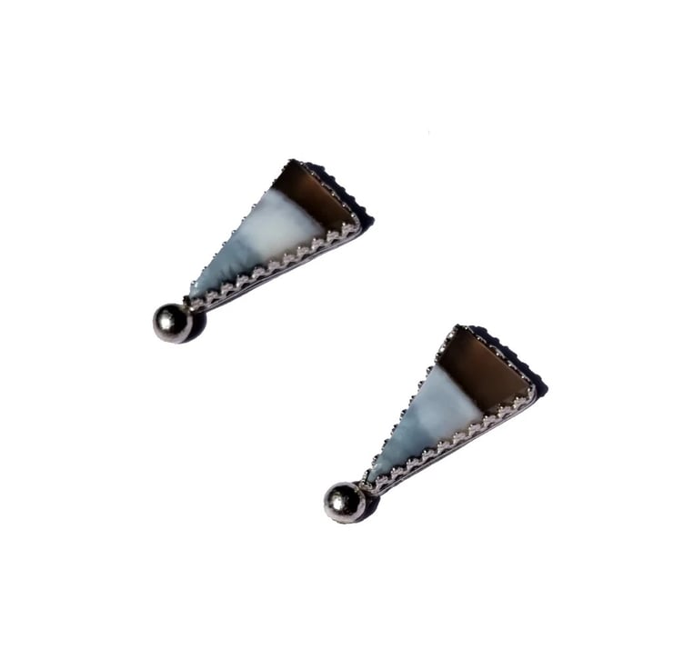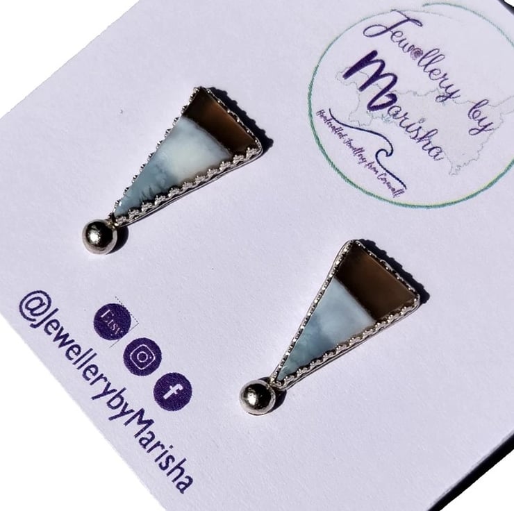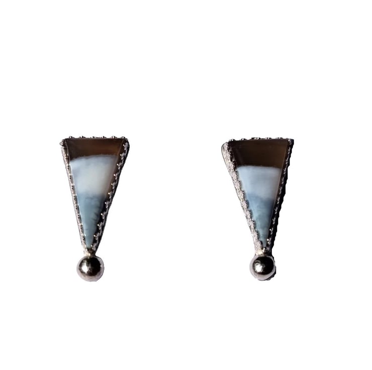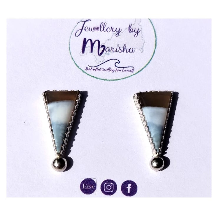 Sterling Silver 925 Handcrafted Stud Earrings with Genuine Rare Blue Opal Triangles