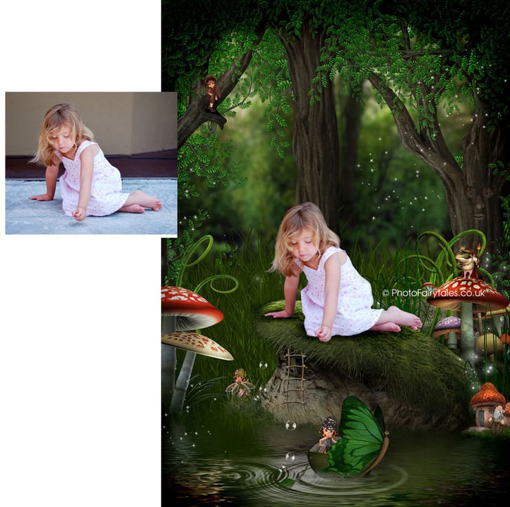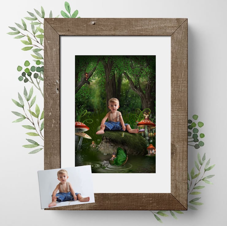 I offer a free checking service before you order, so you know your photo will work with the Portrait before you pay. Send your photo, telling me you'd like the Fairy Hollow design, to queries@photofairytales.co.uk (Visit https://www.photofairytales.co.uk/bestphoto.html for tips on choosing the best photo)