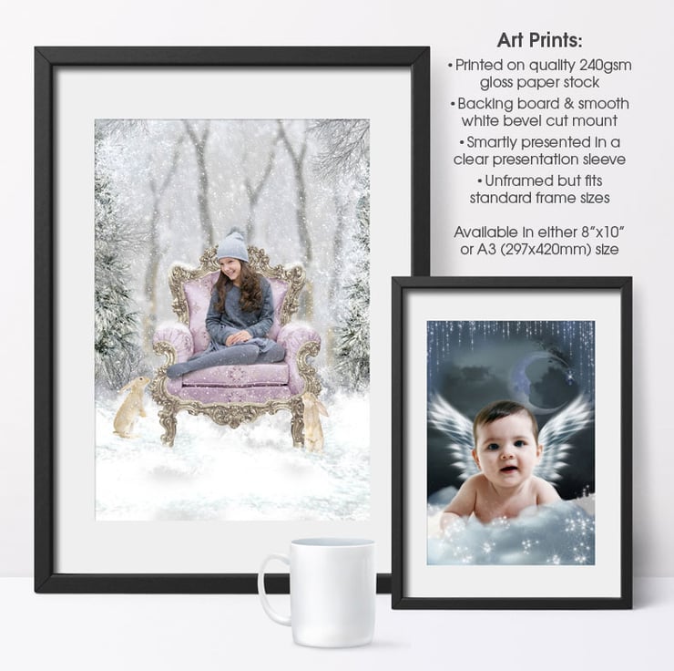 This is where PhotoFairytales started: beginning way back in 2009 my signature Fantasy Portraits have transported children of all ages (and quite a few adults too) to all sorts of magical settings over the years! Each Portrait is made up of a large number of digital layers: usually over 50 elements make up each design. They’re built around your own photo so each one is unique.