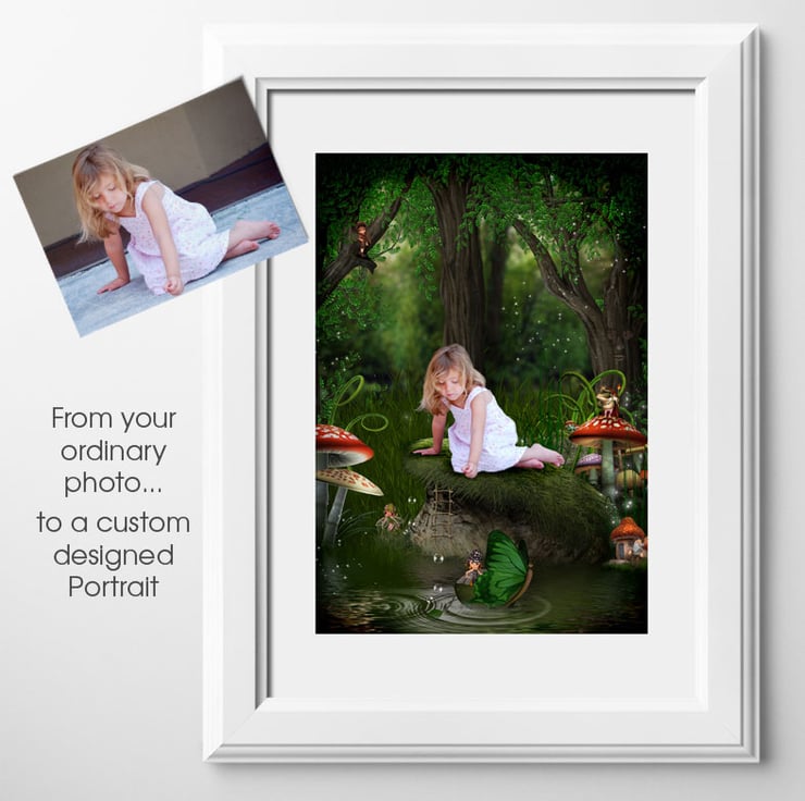 Fairies, elves, pirates, princesses, fairytale dragons and fairy wings: experience the magic of having your photo transformed into a make believe fantasy image. I have lots of fantasy & fairy themes to choose from, with designs that boys and girls will adore. See my shop for more Portrait designs...