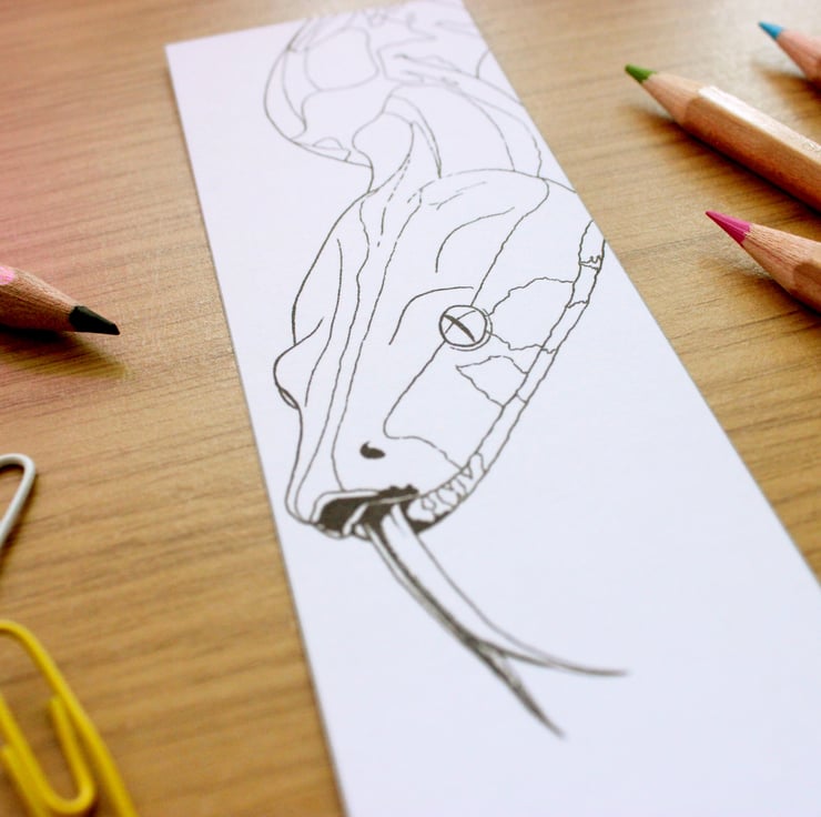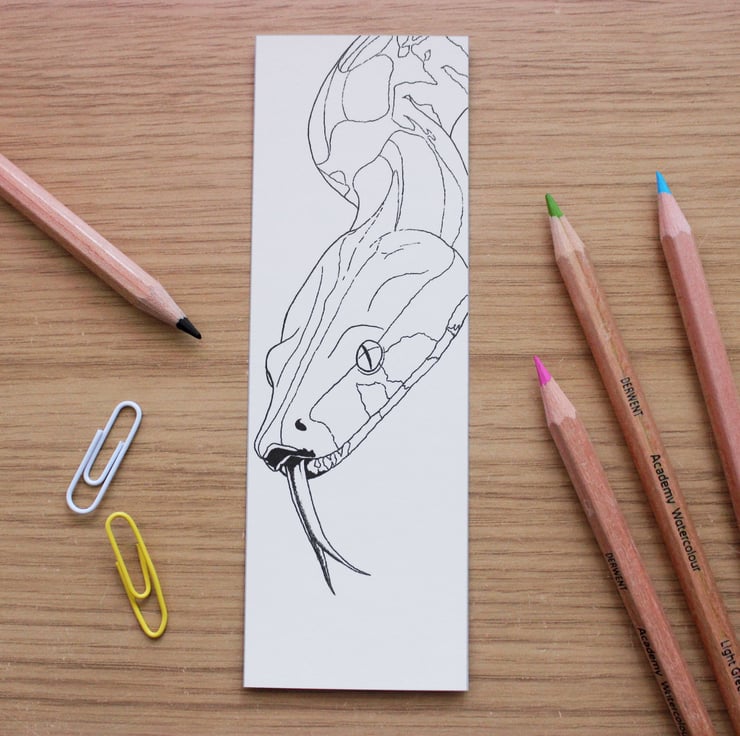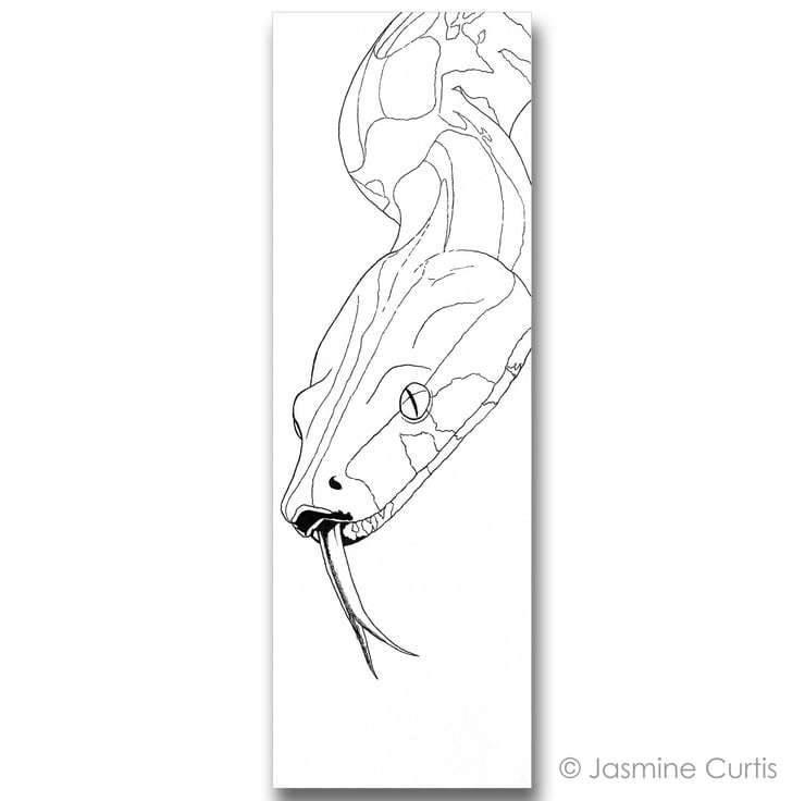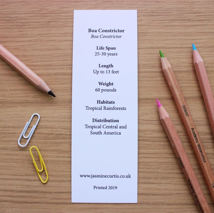 This bookmark features a print of my drawing 'Boa Constrictor,' created in collaboration with Exmoor Zoo.
