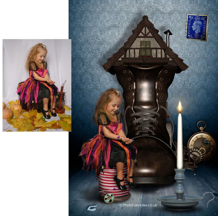 This is where PhotoFairytales started: beginning way back in 2009 my signature Fantasy Portraits have transported children of all ages (and quite a few adults too) to all sorts of magical settings over the years! Each Portrait is made up of a large number of digital layers: usually over 50 elements make up each design. They’re built around your own photo so each one is unique.