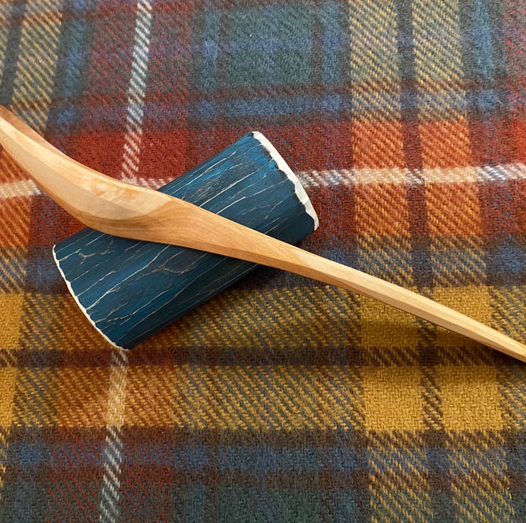 This spoon has been made using traditional methods splitting the material out from a fresh sawn log, sourced from a local tree surgeon. A rough shape for the spoon is then axed out, before moving onto a variety of knives to hone the shape. Once dry, the spoon has been burnished with a smooth scottish pebble, my makers mark has been burned on and finally its been sealed using organic food grade linseed oil.
