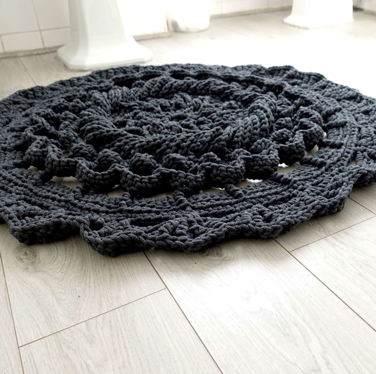 Large Charcoal Rug Hand Crochet Chunky Mandala Design