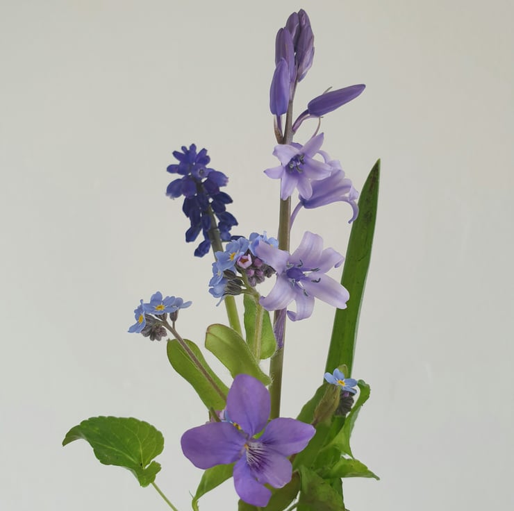 A little bouquet of native garden flowers in blues and purples - bluebells, forget-me-nots and wood violets inspired this colour palette.