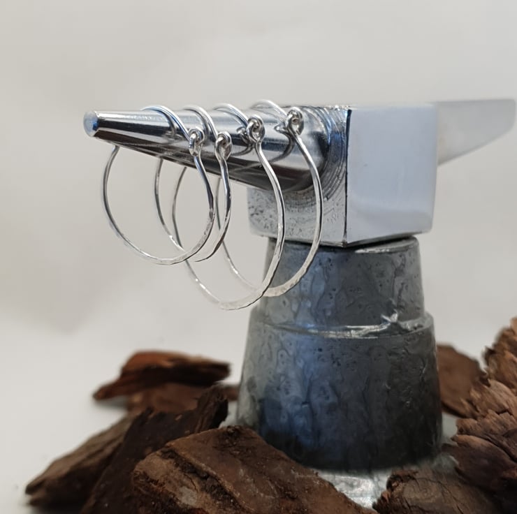 Boho sterling silver hammered hoop earrings. Available in large or small sizes. The style is inspired by classical Roman Jewellery.