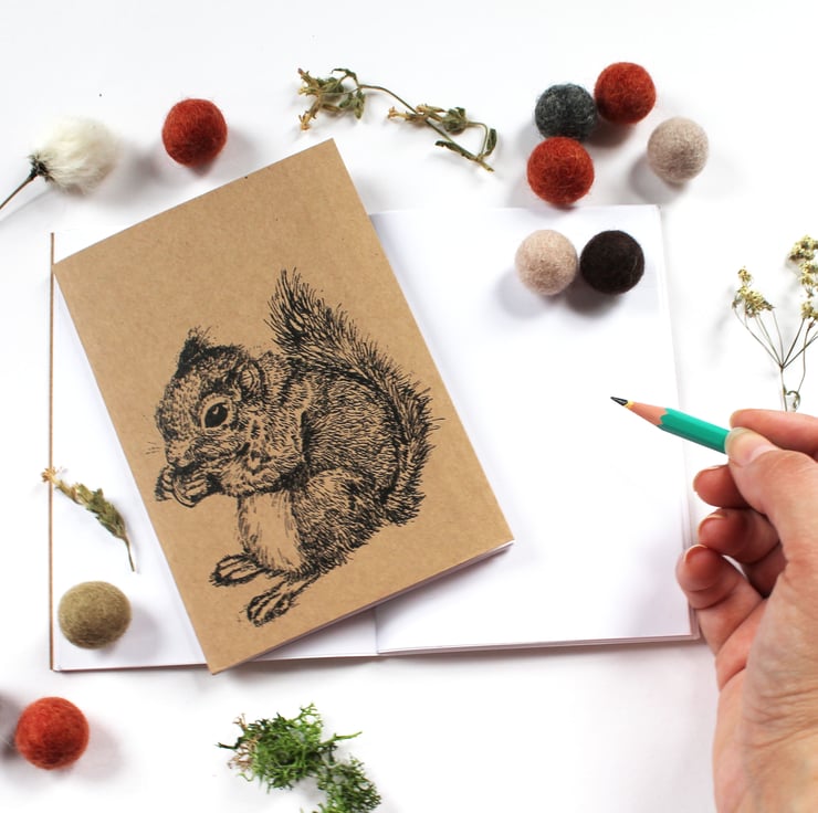 A Cute A6 Squrrel Pocket Notebook, this adorable little squirrel is nibbling away on cover of this lovely little notebook. Perfect for doodles or lists, this notebook will slip easily into a pocket or handbag to go with you on your travels