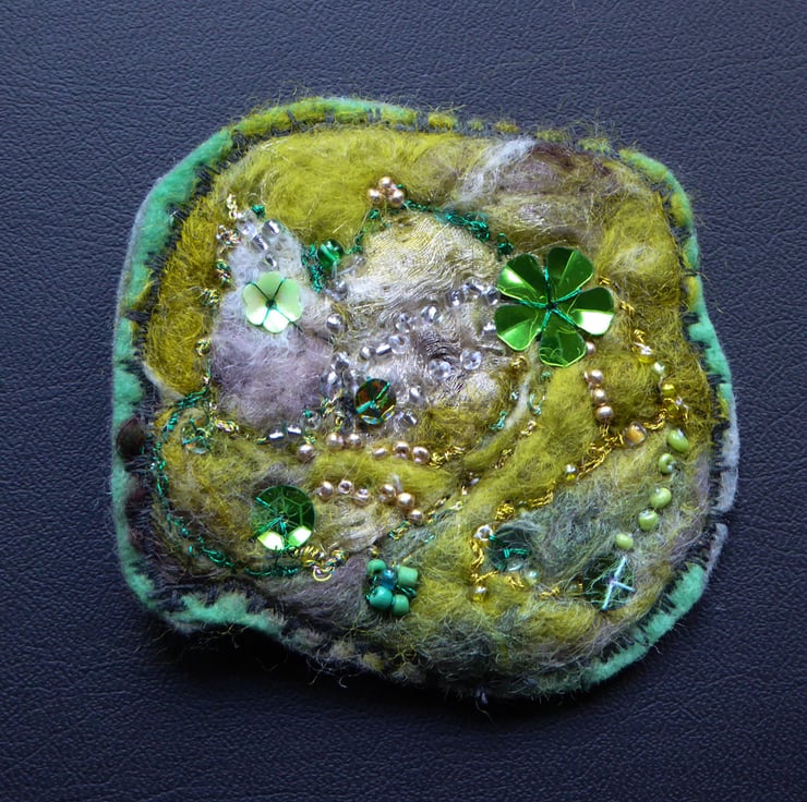 I love blending colours like an artist, using wool rovings to make these individual needle felted designs. They are then secured further using hand and machine embroidery whilst adding some sparkle of beads, threads and the occasional glitzy sequin.