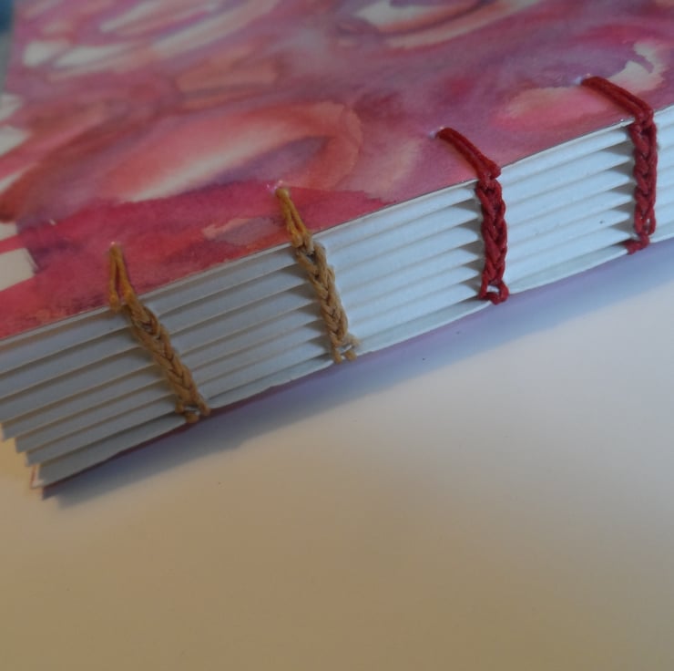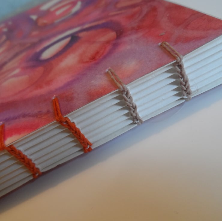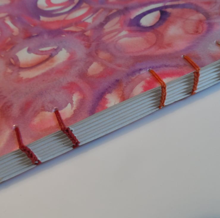 During this workshop I will be demonstrating how to paint your own cover using simple watercolour techniques, and stitch your book together using Coptic stitch (2 needle version).