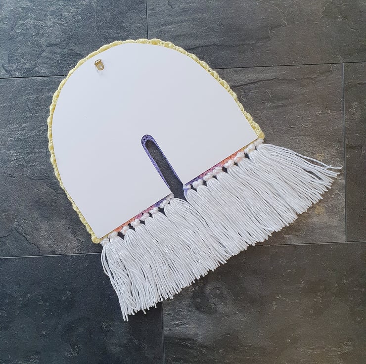 Made up in a combination of purple, lilac, peach and pastel yellow, this wall hanging reminds me of summer sunsets! Mounted on Daler Rowney mounting board, with hanging loop ready to hang.